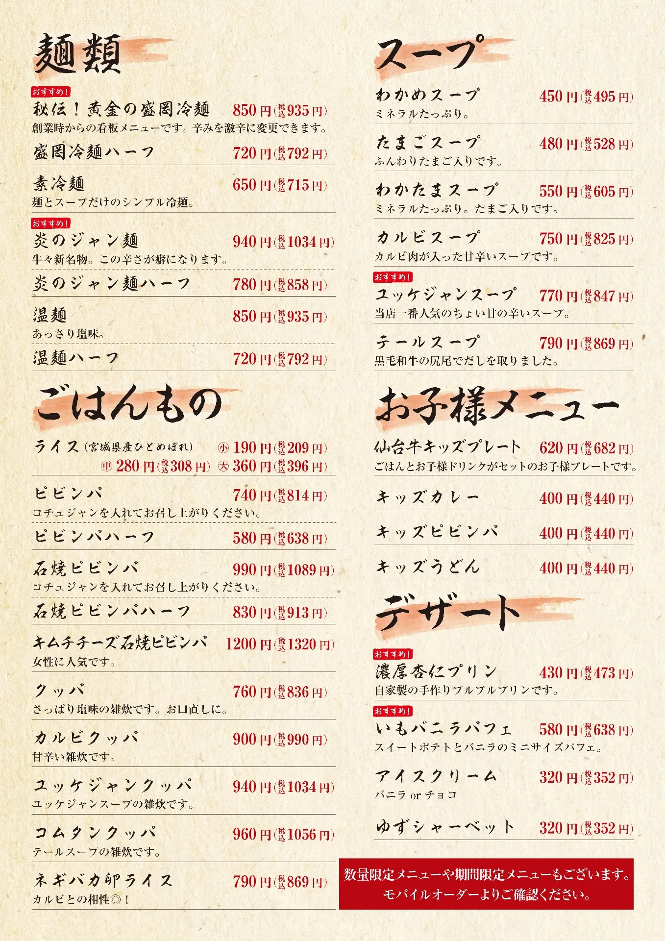 多彩なメニューを詳しく紹介しています。厳選した高品質な牛肉を中心に、部位ごとの特徴を活かした一皿や、焼肉をさらに引き立てる新鮮な野菜、特製タレのこだわりなどをお伝えしています。ランチタイム限定のセットメニューや、こだわりの一品など、さまざまなシーンに対応した内容も充実しています。また、サイドメニューやドリンク、デザートのラインナップも幅広く掲載しています。